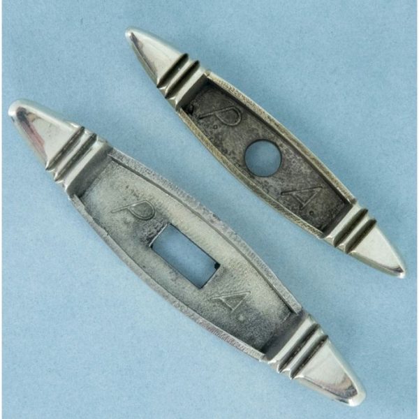 Our German Dagger Crossguard Set for SS, SA, NSKK and NPEA daggers consists of an upper and lower crossguard cast in nickel silver, just like the early originals. Featuring “P A” maker marks of the Solingen firm “Piel & Adey” on the interior; excellent replacements for restorations and missing original parts. Hand finished, finest available, and the correct size to fit original WWII daggers!