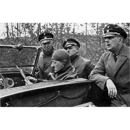 These are leather caps from Germany Circa 1940s or 1950s. Same leather caps as seen in photos of Adolph Hitler in the 1930’s etc. We got them from a German friend we see every year at Sainte-Mère-Église, France’s military show. He says these were the same as the funny looking leather caps that Hitler wore in some of his famous pictures.