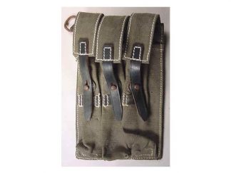 Tan canvas and black leather straps. High quality Reproduction. Aged and made to look original. This is a single MP40 pouch not set.