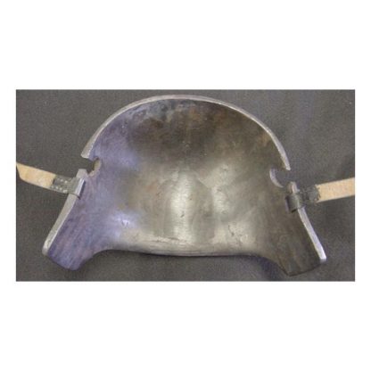 The ventilation lugs on each side of the WW1 German steel helmets were used to support this optional steel helmet shield, the (Stirnpanzer) which also attached around the back of the helmet with a leather strap. Not popular with regular troops due to the weight. They were used mainly by snipers. Not many of these brow plates were originally produced. Comes with leather strap and buckle.