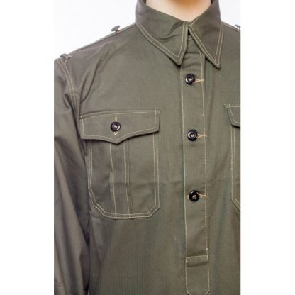 The German army had a wide variety of undershirts with fabrics ranging from cotton, wool or rayon knits, to “aertex”, to various weights of cotton and cotton rayon twills and poplins. The colors varied from white, gray, field grey and numerous shades of green.